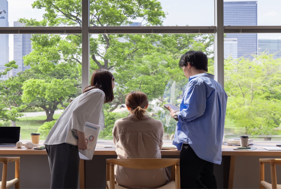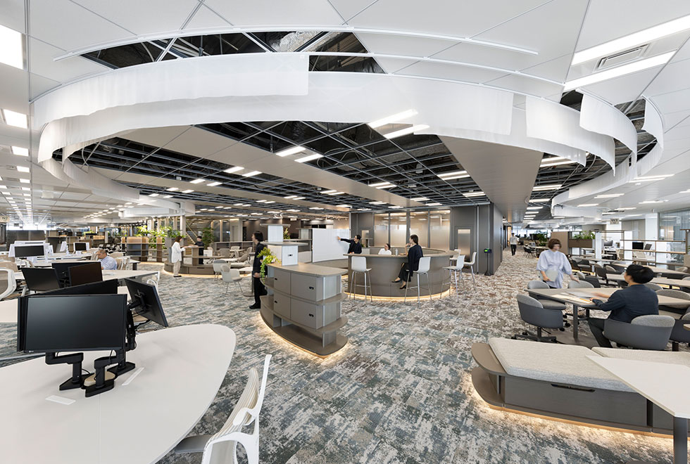 2025年の本社オフィス移転により、明るく開放感のある快適なオフィス環境を整えました。なお、本社以外にも沢山の働く拠点がありますが、全ての拠点で順次改修工事を進めており、集中しやすい執務スペースや打合せ、リフレッシュ空間も充実させています。当社では「社員それぞれが自らの意志で働く場所を選び取る、自分の居場所として強く感じられ進んで来たくなる、社員同士のコミュニケーションが活性化し新たな価値創造をする」オフィスを目指しています。