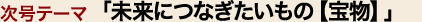 あなたが誰かから受け継ぎ、お子さまやお孫さまなど未来にも受け継いでほしい「宝物」と、それにまつわるエピソードを教えてください。