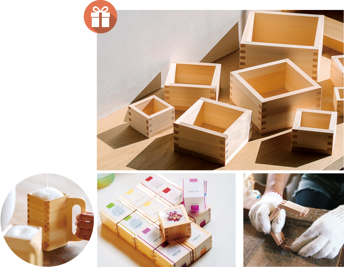 全国の枡生産シェアの8割を占める大垣市にある大橋量器。枡の専門店として、その技術と文化を次の世代にも継承するため、新しい枡の開発や使い方の提案に力を入れています。ギフトやインテリアにもおすすめです。